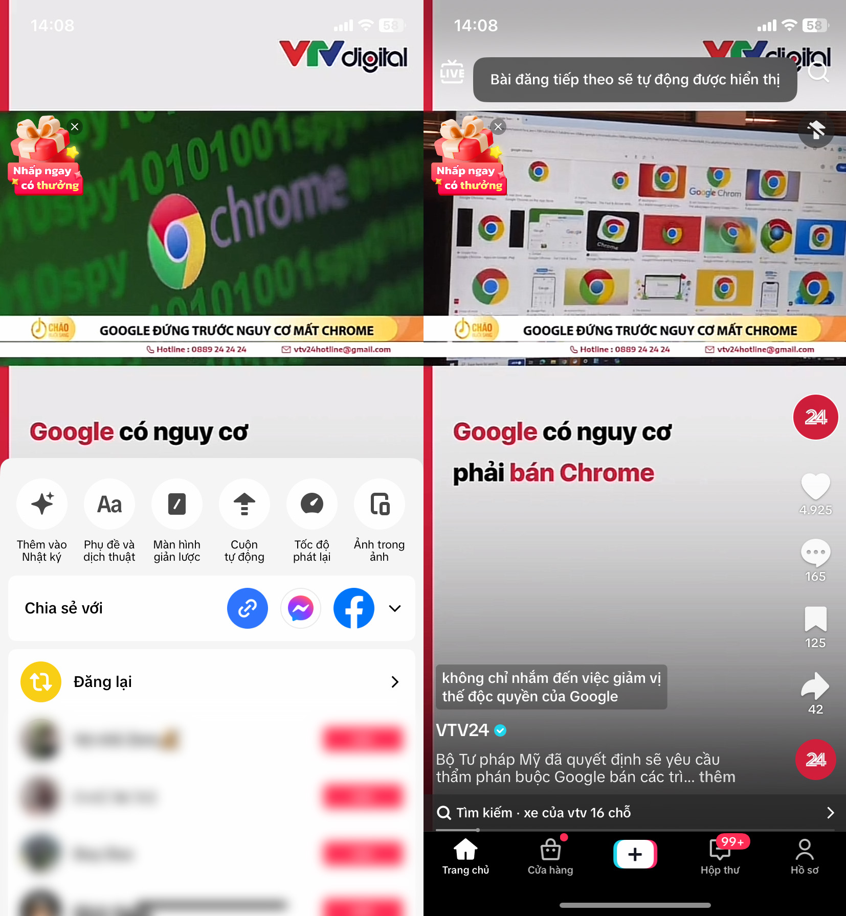 - Cách thực hiện: Mở bất kỳ video nào trên trang “Dành Cho Bạn”. Nhấn giữ màn hình video và chọn “Tự động cuộn” từ menu hiện ra. Một thông báo sẽ xuất hiện ở phía trên màn hình xác nhận tính năng đã được bật.