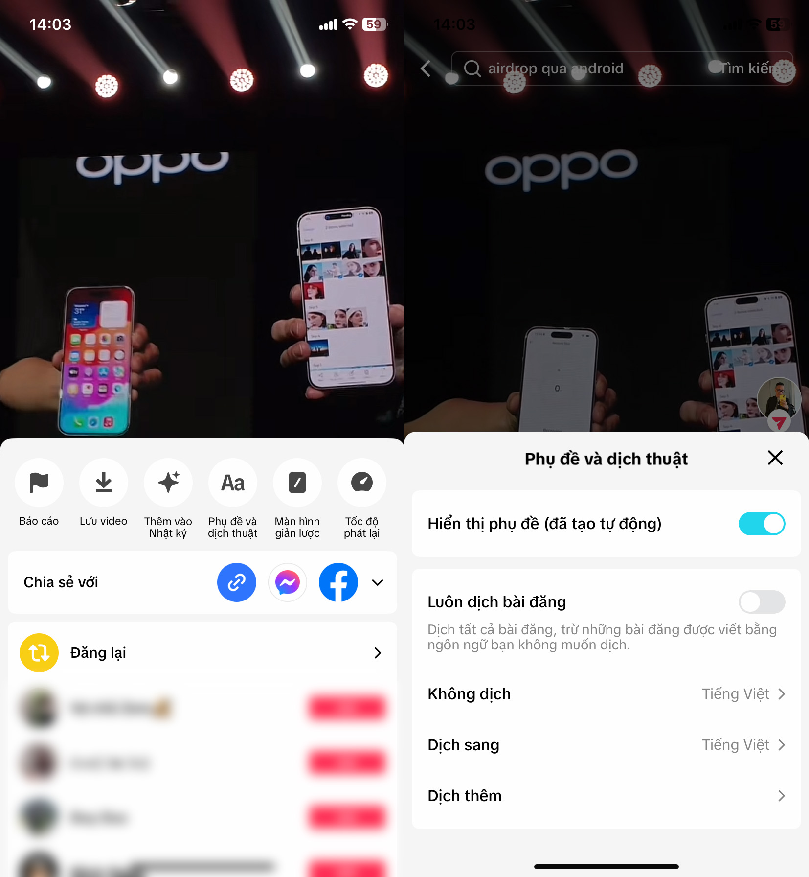 - Cách thực hiện: Nhấn giữ màn hình video và chọn “Phụ đề” từ menu. Sau đó, bật công tắc “Hiển thị phụ đề (tự động tạo)”.