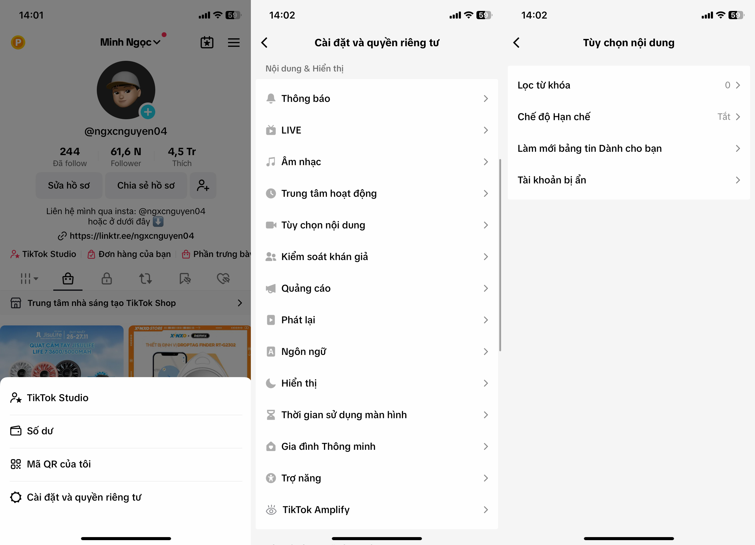 - Bước 3: Cuộn xuống và chọn mục Tùy chọn nội dung. Ở trang tiếp theo, nhấn chọn Làm mới bảng tin Dành cho bạn.