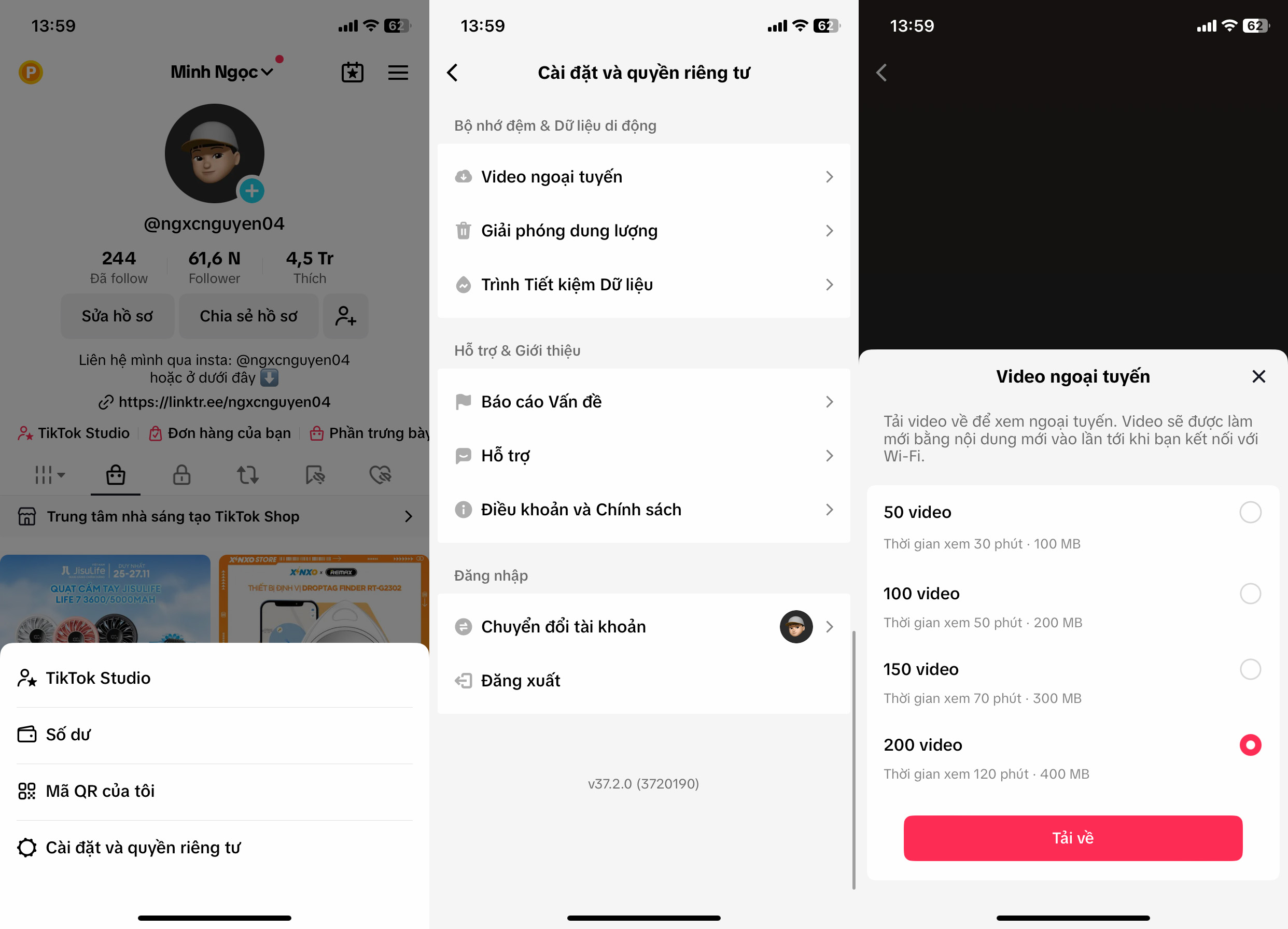 - Bước 4: Sau khi quá trình tải hoàn tất, người dùng có thể xem video không cần mạng trên TikTok bằng cách vào mục Video ngoại tuyến trong phần Cài đặt ở bước 3.