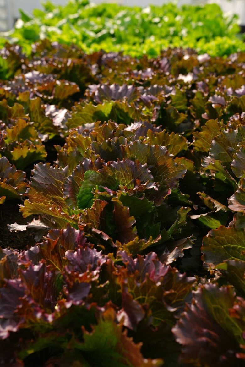 Từng luống rau xanh tươi, từ xà lách, cải ngọt, đến cải tím và cả cà chua đều được chăm sóc tỉ mỉ, chứng minh tình yêu thiên nhiên của gia chủ.