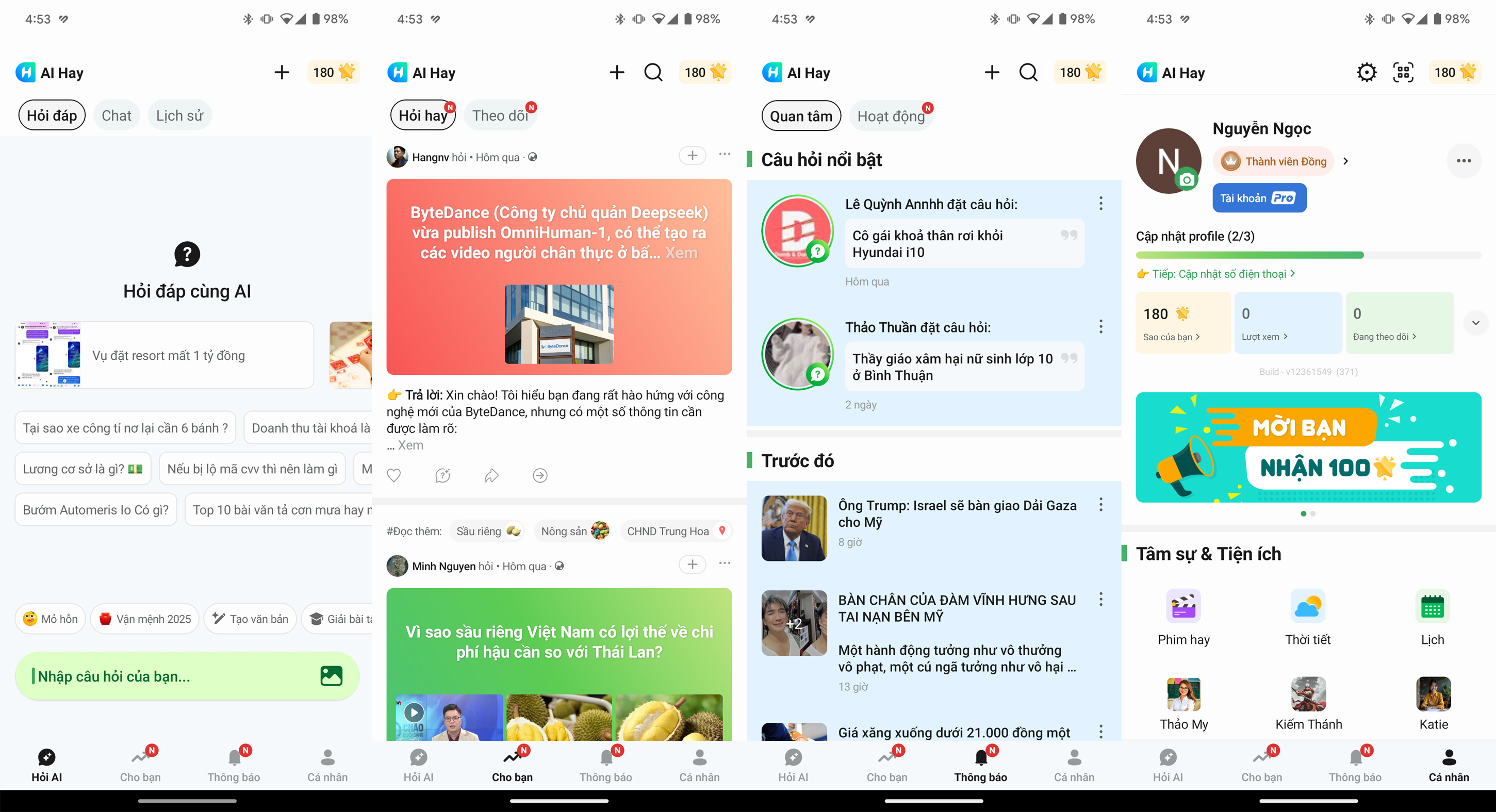 Trong thời đại bùng nổ thông tin, việc nắm bắt các xu hướng và thông tin mới nhất trên mạng xã hội như TikTok, Facebook đã trở thành một thách thức lớn, nhất là với người dùng bận rộn, không có nhiều thời gian để “lướt” thông tin. Hiếm có công cụ nào thực sự hỗ trợ hiệu quả trong việc cập nhật những biến động chóng mặt này, cho đến khi “AI Hay” xuất hiện. Đây là một ứng dụng hỏi đáp tích hợp trí tuệ nhân tạo (AI), được phát triển dành riêng cho người Việt.