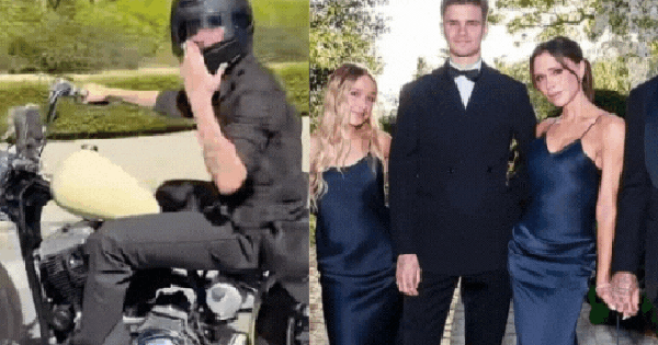 Thế nhưng, khác với người cha luôn đề cao sự an toàn, Brooklyn bị ghi lại cảnh vừa kéo tấm che mũ bảo hiểm lên, vừa lái xe một tay để hôn gió với vợ – Nicola Peltz – khi vừa ngang qua một ngã tư nhiều xe cộ.