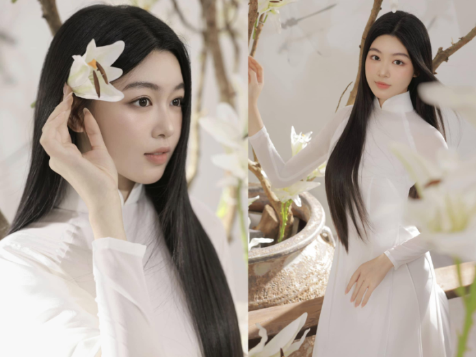 Con gái Quyền Linh đốn tim netizen trong tà áo dài trắng tinh khô