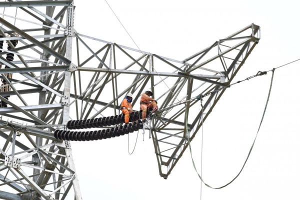 | Công nhân thi công khẩn trương đoạn đường dây 500 kV Phố Nối – Hưng Yên để hoàn thành đúng tiến độ. Ảnh: Cấn Dũng |