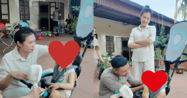 Bên cạnh cô là Đoàn Văn Hậu – ông bố quốc dân đang ân cần hỗ trợ vợ trông con. Cặp đôi trẻ khiến netizen không khỏi “lụi tim” bởi những cử chỉ đầy yêu thương, chăm sóc con nhỏ một cách khéo léo và tự nhiên. Dù là cầu thủ nổi tiếng hay hot girl học giỏi từng thi Hoa hậu, thì khi về nhà, họ cũng chỉ là những ông bố, bà mẹ trẻ hết lòng vì con mà thôi. Cả hai cùng cười vui vẻ khi thấy cục cưng Minh Đăng chạy nhảy khắp sân ở quê nhà, thích thú khi được bố giới thiệu những cây trái trong vườn,… Đặc biệt là trong vlog, Doãn Hải My cười không ngớt, khiến cư dân mạng nghe mà thấy vui tai và muốn cười theo.