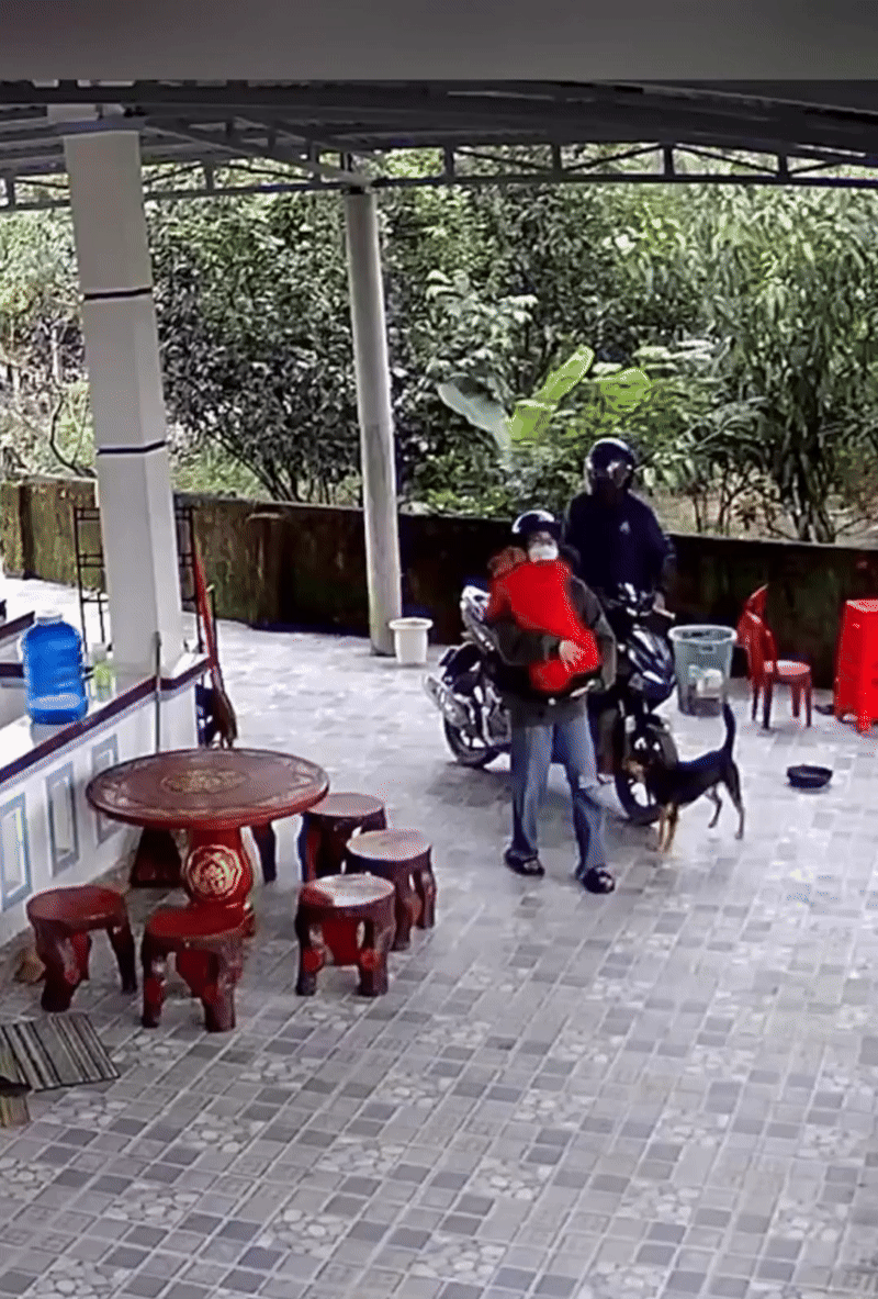Thấy chị về, cậu bé liền lao nhanh ra để đón chị.
