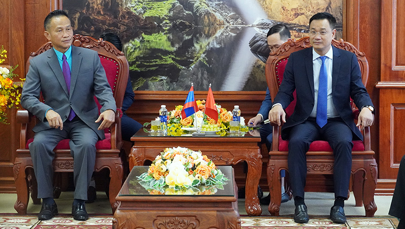 Tại buổi tiếp, đồng chí Bí thư Tỉnh ủy Lê Ngọc Quang và đồng chí Phó tỉnh trưởng Kẹo-ủ-đon Bút-sing-khỏn đã trao đổi thông tin về tình hình kinh tế-xã hội, quốc phòng-an ninh, biên giới và những kết quả nổi bật trong hoạt động hợp tác của hai tỉnh.
