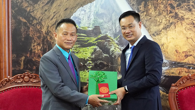 Trân trọng cảm ơn sự đón tiếp nồng hậu của đồng chí Bí thư Tỉnh ủy Lê Ngọc Quang, đồng chí Phó tỉnh trưởng Kẹo-ủ-đon Bút-sing-khỏn chuyển lời chúc mừng tốt đẹp nhất của đồng chí Bí thư, Tỉnh trưởng tỉnh Khăm Muồn đến đồng chí Bí thư Tỉnh ủy Quảng Bình.