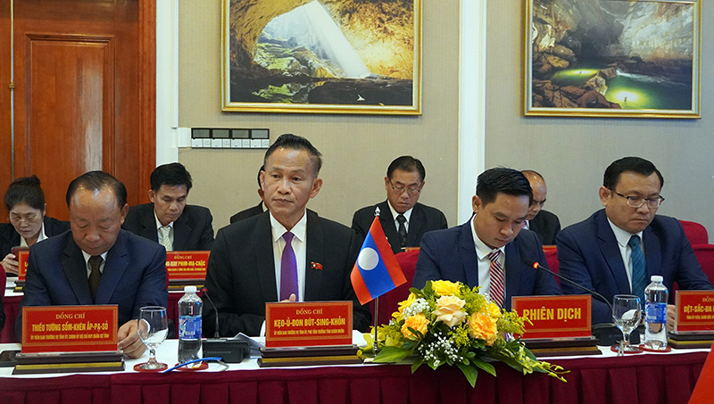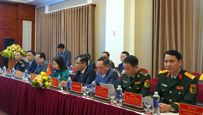 Tại buổi hội đàm, hai đồng chí trưởng đoàn đã thông tin về tình hình kinh tế-xã hội (KT-XH) của hai địa phương trong thời gian qua và đánh giá kết quả thực hiện Biên bản hợp tác về công tác biên giới giữa hai tỉnh ký ngày 28/11/2023 tại TX. Thà Khẹc (Khăm Muồn).