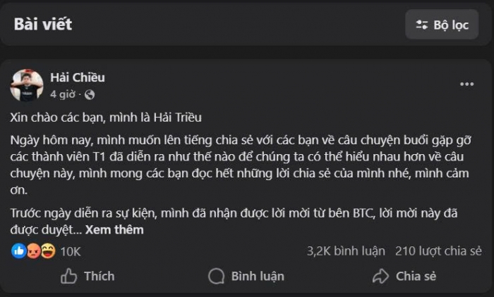 Tuy nhiên, sau bài đăng giải thích của cả hai, phần lớn dư luận và người hâm mộ eSports Việt Nam vẫn chưa thực sự thỏa mãn. Nhiều ý kiến tiếp tục bày tỏ sự khó hiểu, đặc biệt xoay quanh việc Hải Triều tự nhận là fan LMHT nhưng lại bỏ về sau trận giao lưu đầu tiên của T1.