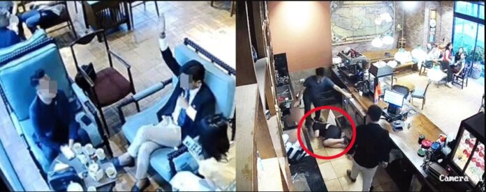 Sau lần nhắc thứ ba, một người trong nhóm ra hiệu, ngay lập tức người ngồi cạnh tiến tới quầy và tung liên tiếp hai cú đấm vào mặt nhân viên khiến nạn nhân ngã xuống sàn. Người được gọi là “tổng tài” sau đó giơ tay ra hiệu và nói “thôi, thôi, thôi” rồi quay về chỗ ngồi. Toàn bộ sự việc đã được camera an ninh ghi lại.
