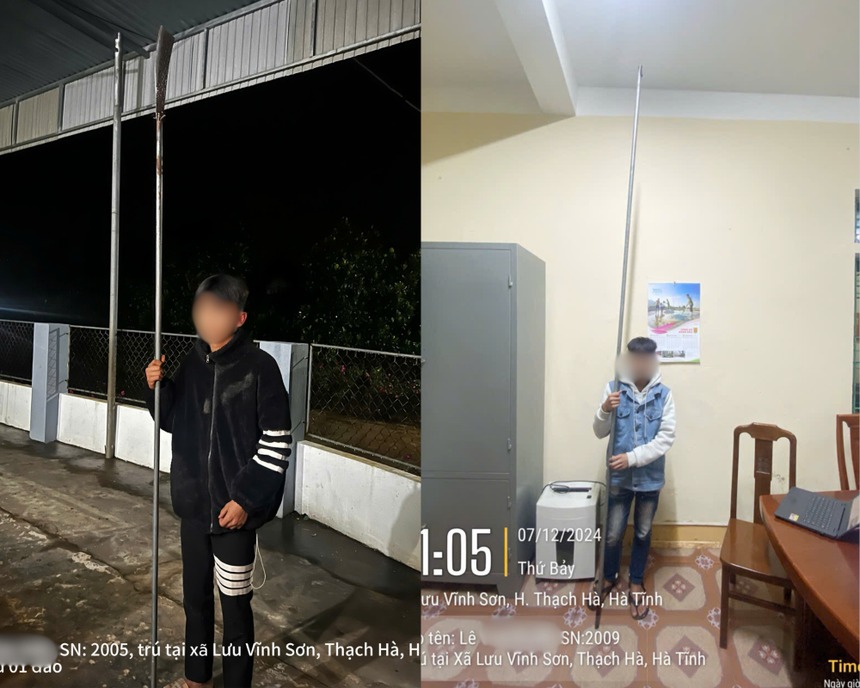 Qua xác minh, Công an đã xác định được danh tính và tiến hành triệu tập 13 trường hợp gồm: Phan Viết T.H (SN 2007); Trần Huỳnh H.D (SN 2007); H.V.B ( SN 2010); Phạm Q.V ( SN 2009); Cao V.M (SN 2008); Trần Nguyễn V.D (SN 2007); Đinh G.B (SN: 2007); Nguyễn Lý T.L (SN 2008) đều trú tại huyện Hương Khê; Trần Q.V (SN 2005), Nguyễn Công N.A (SN 2005); Nguyễn V.H (SN 2000) và Lê V.Q (SN 2009) đều trú tại huyện Thạch Hà; Nguyễn Dương T.G (SN 2008), trú tại Phường Dĩ An, thành phố Bình Dương (hiện đang sinh sống cùng với ông, bà nội tại xã Thạch Hội, huyện Thạch Hà). Lực lượng Công an đã tiến hành thu giữ 2 đao tự chế cùng các tang vật khác có liên quan.