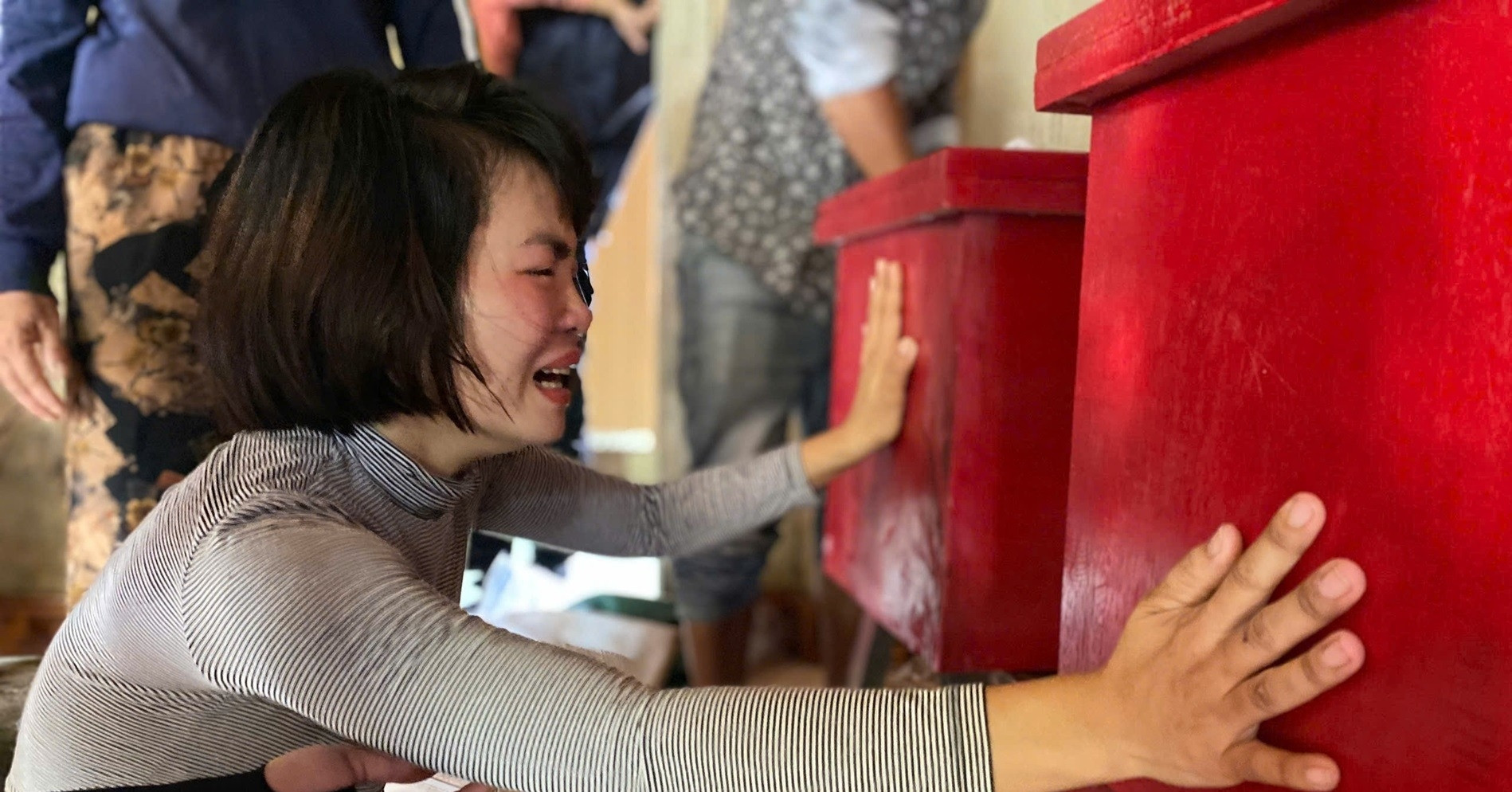 Bên trong căn nhà cấp 4, những tiếng khóc than khiến ai nấy quặn lòng. Chị Tưởng cùng 3 con gái thảm thiết gọi tên các cháu Q. và T. trong nỗi tuyệt vọng.