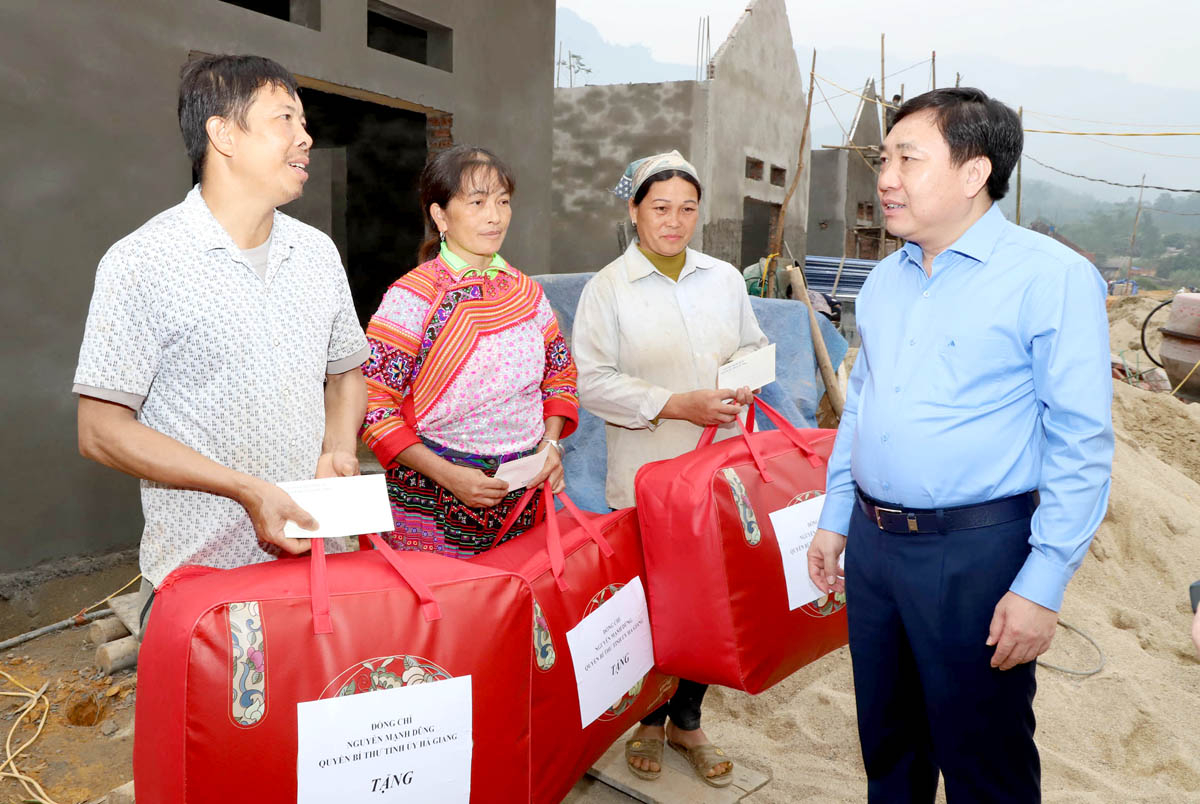 | Quyền Bí thư Tỉnh ủy Nguyễn Mạnh Dũng tặng quà các hộ dân thôn Đồng Tâm |