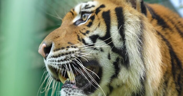 Cá thể hổ Đông Dương được mệnh danh là “chúa tể sơn lâm” đang được nuôi dưỡng tại Vườn Quốc gia Phong Nha – Kẻ Bàng. |