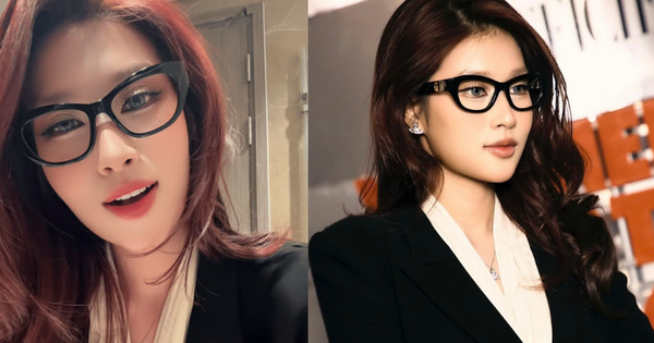 Thiên Ân khiến cộng đồng mạng khó có thể rời mắt với mái tóc đỏ rực rỡ, cắt layer và uốn phồng, để ngôi lệch. Nàng hậu lựa chọn style makeup sắc ở phần mắt cùng tông son đỏ để match với màu tóc. Việc sử dụng mắt kính giúp giao diện mỹ nhân sinh năm 2000 pha trộn thêm nét cool ngầu, hợp với vest độn vai cá tính, hiện đại.