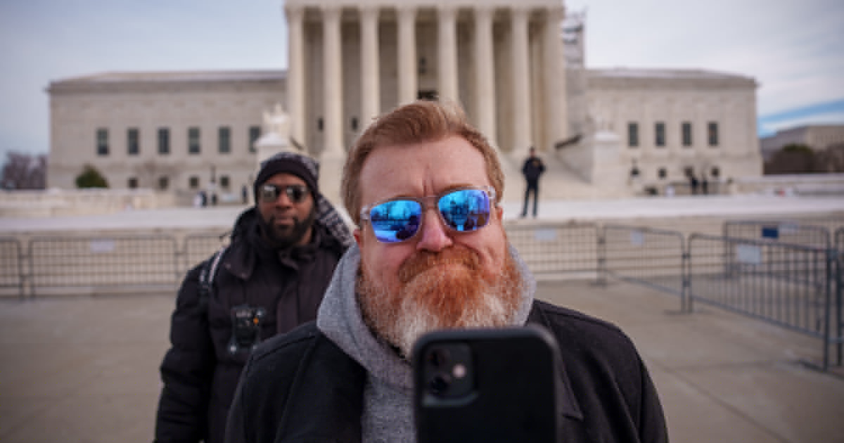 Một người livestream trước trụ sở Tòa án Tối cao Mỹ ngày 10.1