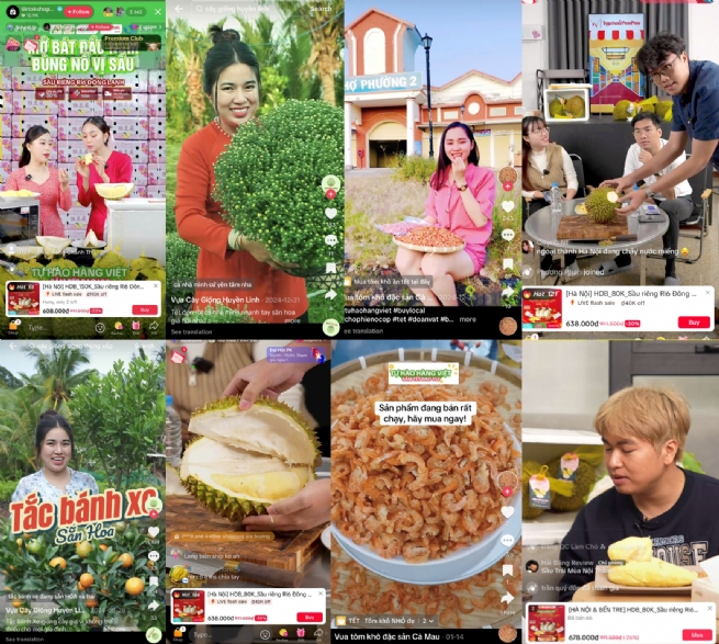 Nhiều Nhà Bán Hàng địa phương tuy mới chỉ gia nhập nền tảng trong năm 2024 đã ghi nhận sự chuyển mình mạnh mẽ trong dịp cao điểm bán Tết. Tiêu biểu, dịp cuối năm nay, với sự hỗ trợ của Trung tâm Xúc tiến Thương mại Nông nghiệp và TikTok Shop, thương hiệu Sầu Riêng Đông Lạnh đạt chuẩn OCOP 5 Sao Bến Tre từ Công ty TNHH Chánh Thu – trước đây vốn chỉ phục vụ xuất khẩu Mỹ, Úc, Canada… đã có màn “ra mắt” người tiêu dùng Việt đầy ấn tượng trên “sóng” livestream TikTok Shop. Vua Tôm Khô Cà Mau (@khocamau5), tuy mới chỉ “lên sàn” được 10 tháng nhưng đã ghi nhận doanh thu tăng trưởng đều đặn và tăng gấp tới 3 lần trong 3 tháng giáp Tết Ất Tỵ 2025, mang tới một mùa Tết đáng nhớ cho bà con Đất Mũi Cà Mau.